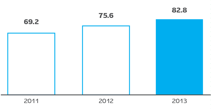 The package comprises workers’ wages (average 92.4% of the total at the Russian-based Group enterprises in 2013) plus social grants (7.6% of the total).